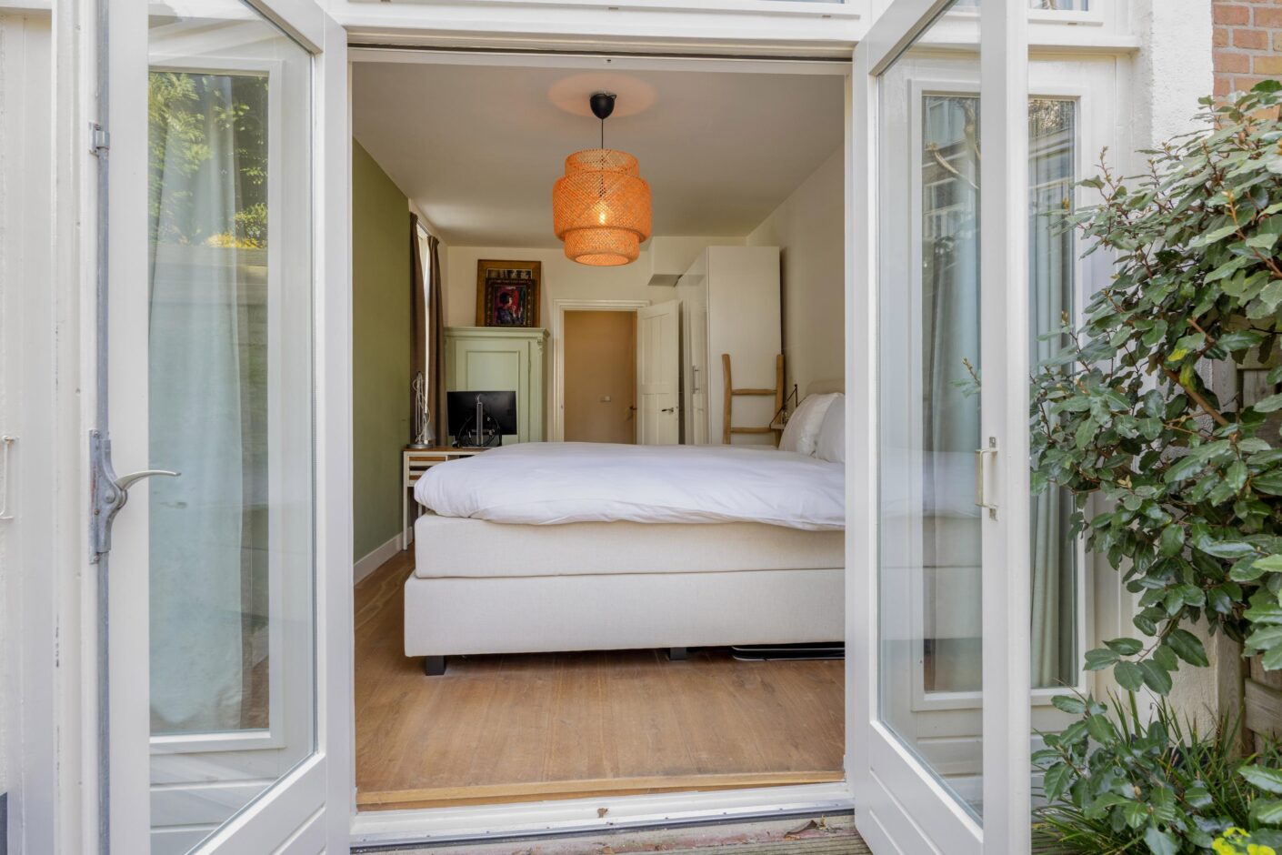 slaapkamer met openslaande deuren naar de het achterbalkon