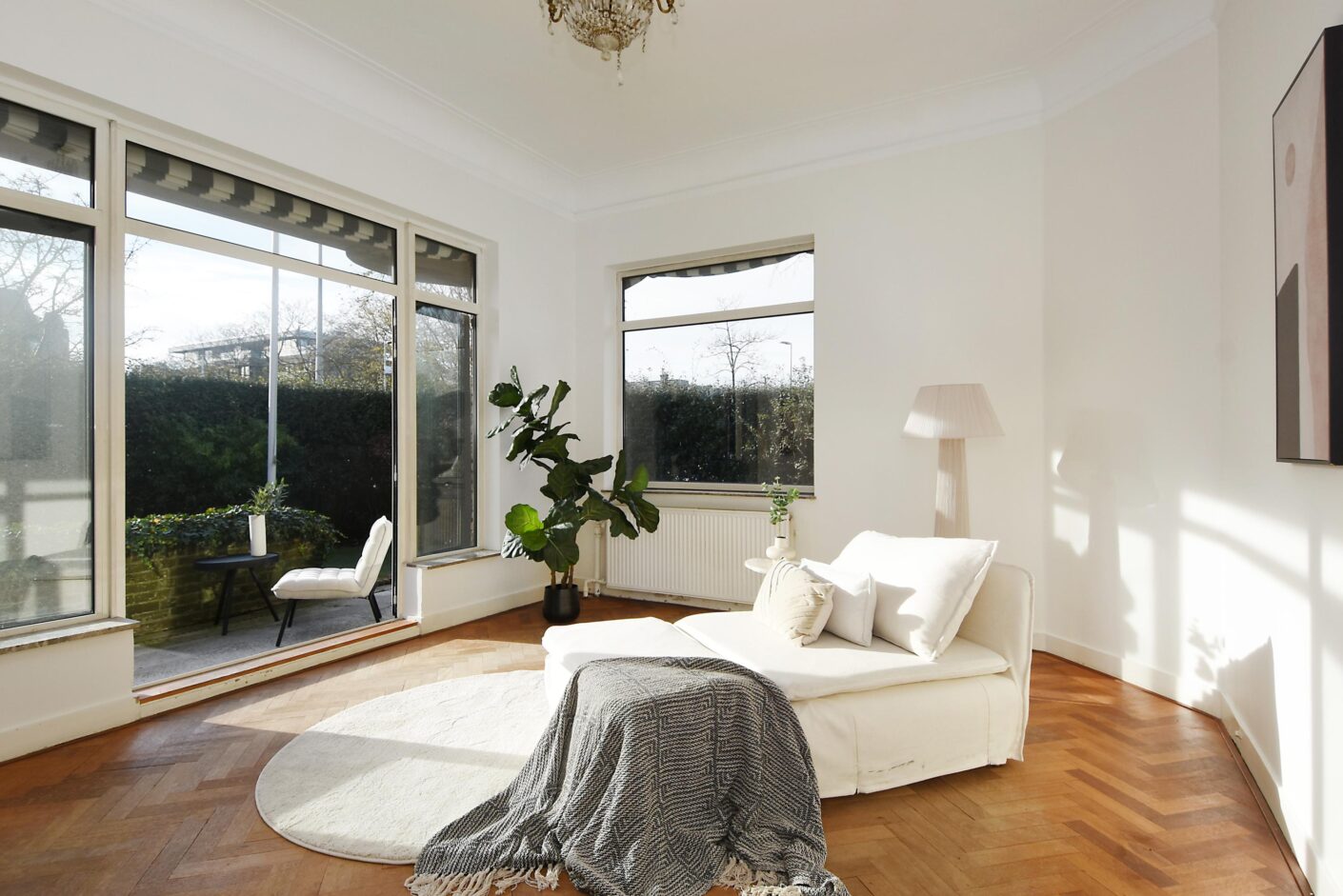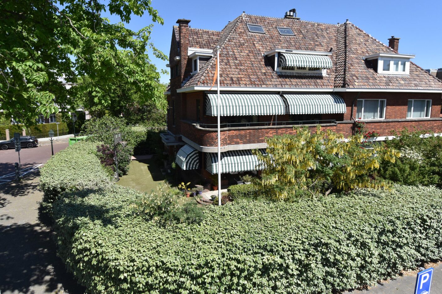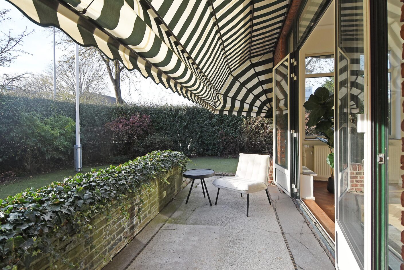 The villa is situated on freehold land and features a driveway with garage and a lovely private garden surrounding three sides of the house. The particularly sunny and ???? (quiet) backyard on Luiksestraat serves as a true outdoor living space—peaceful, green, and fully secluded. The southwest-facing front garden also offers complete privacy. Thanks to the beautiful hedge surrounding the property, the garden enjoys exceptional privacy in the heart of ’t Belgisch Park.