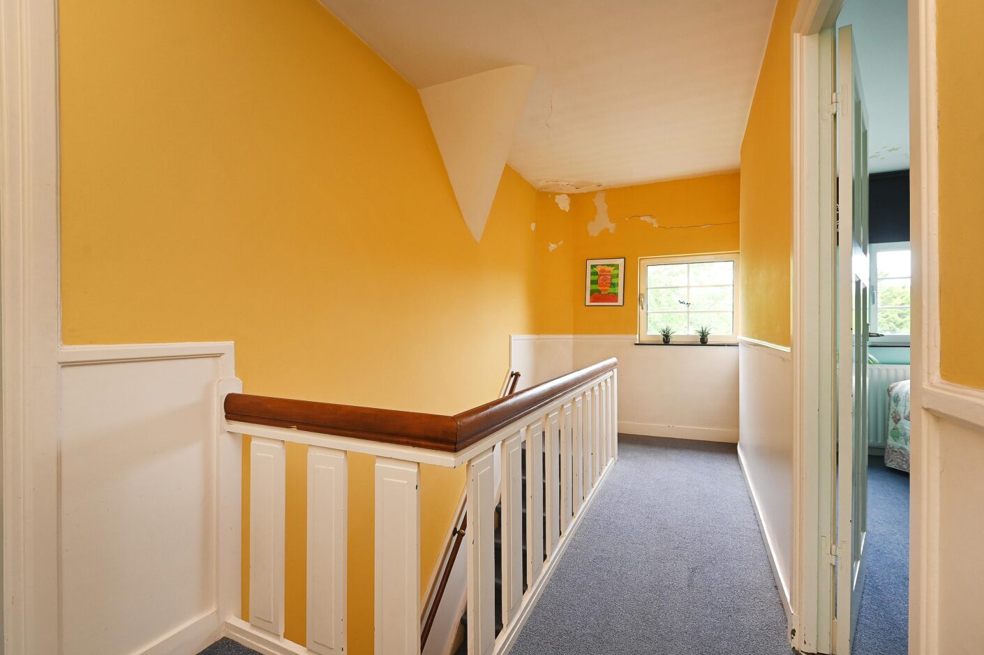 Landing with toilet and storage cupboard.