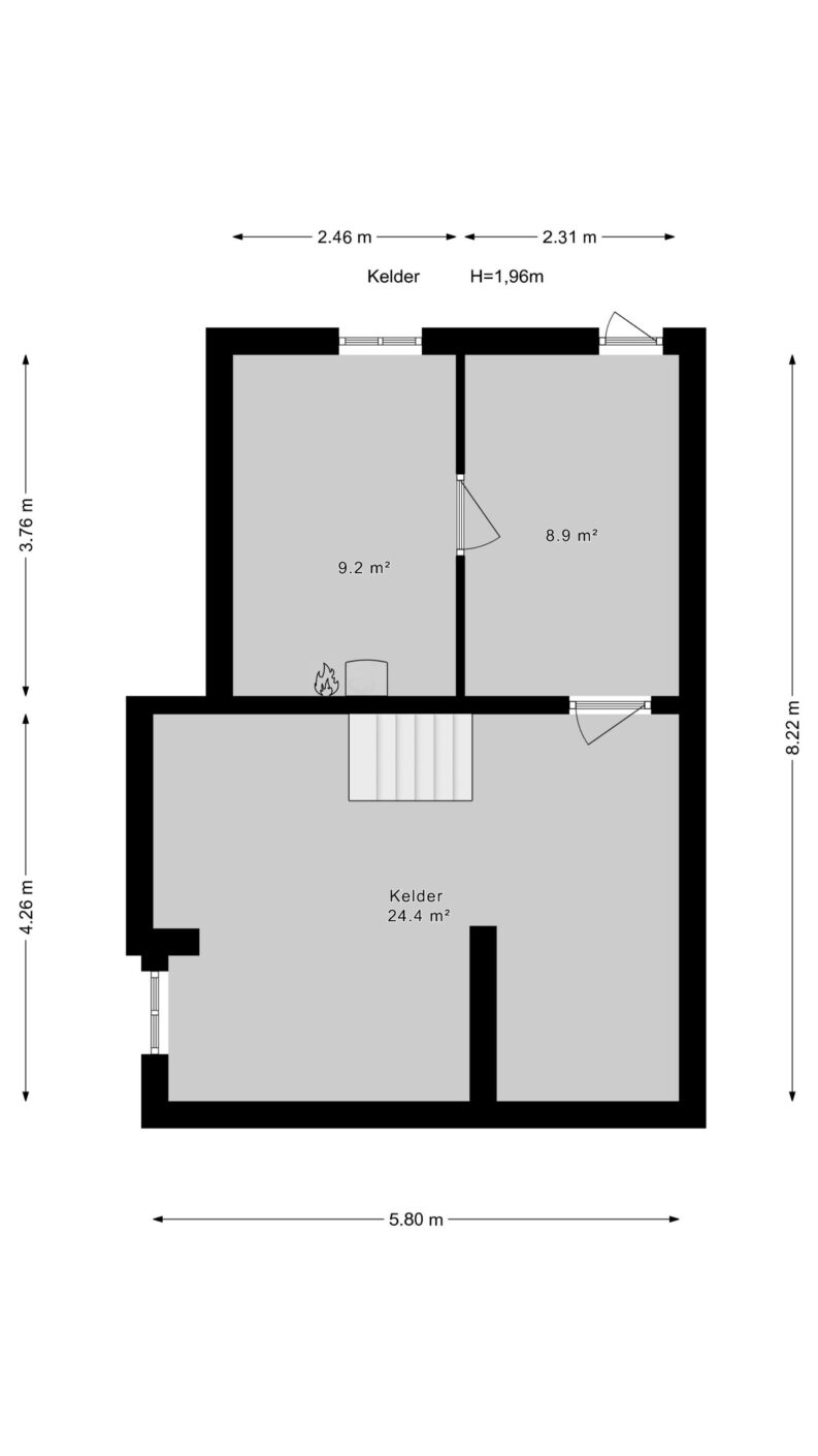 toegang tot ruime kelder (ca. 44 m2) verdeeld over meerdere vertrekken met cv-opstelplaats