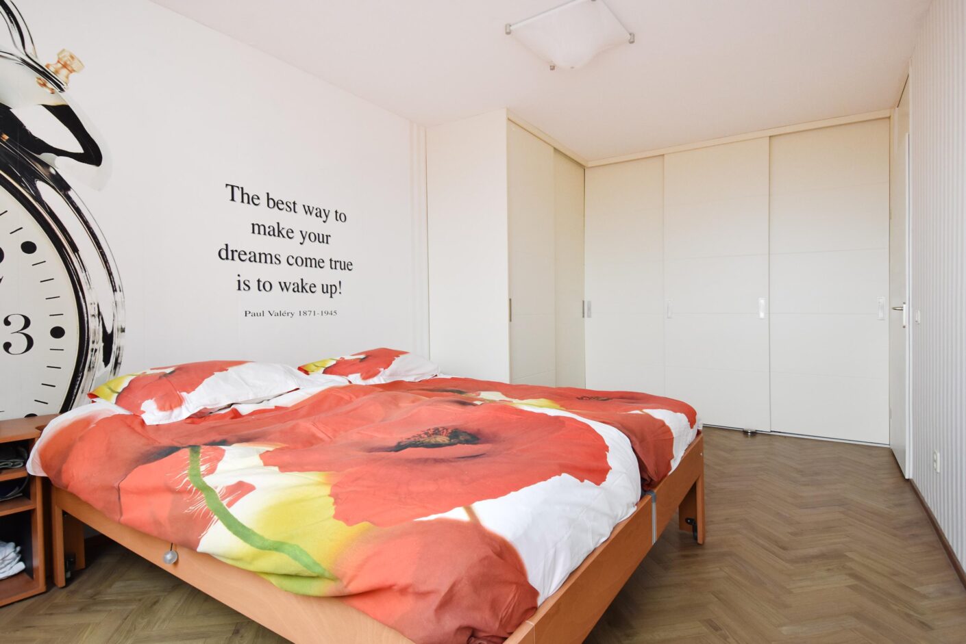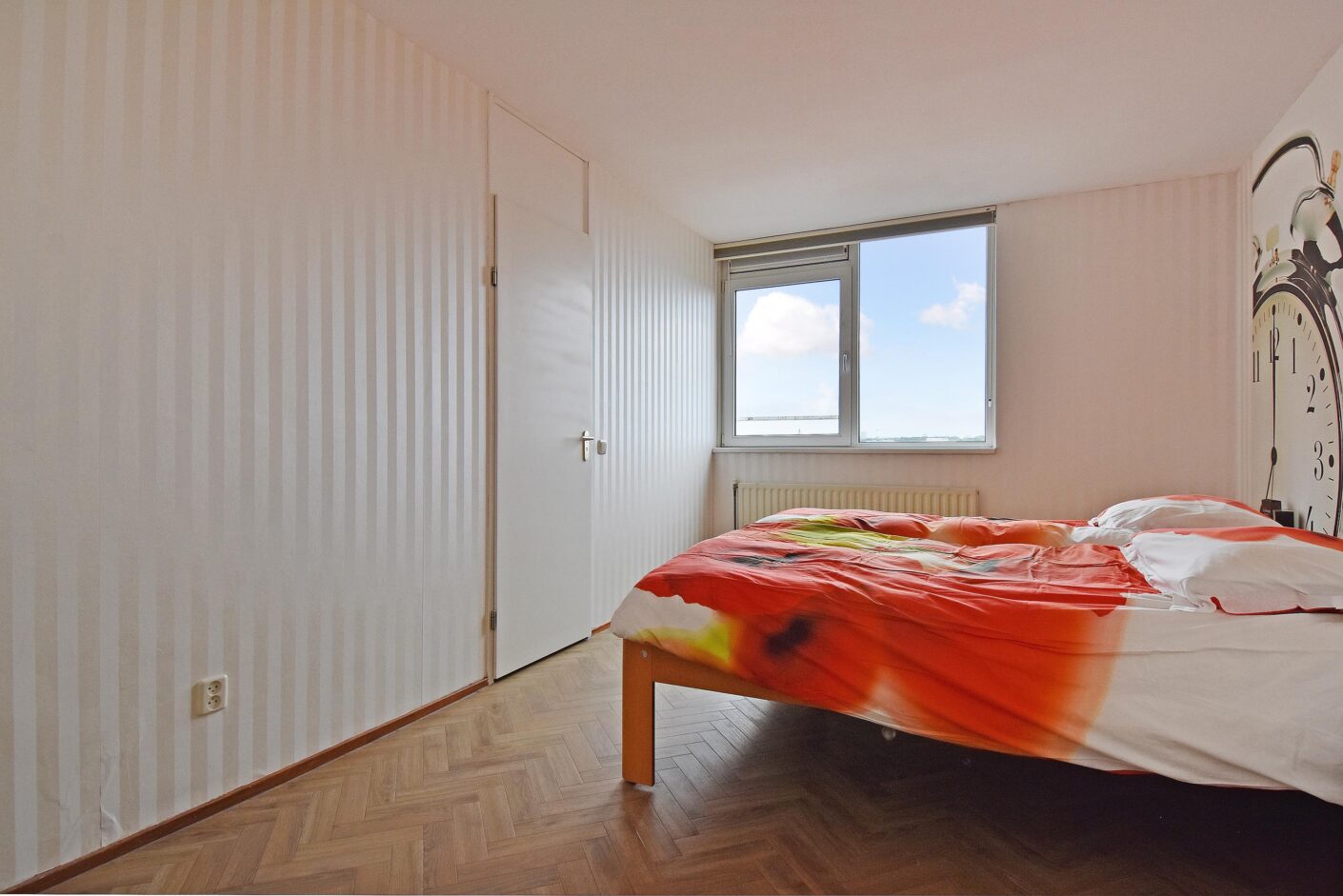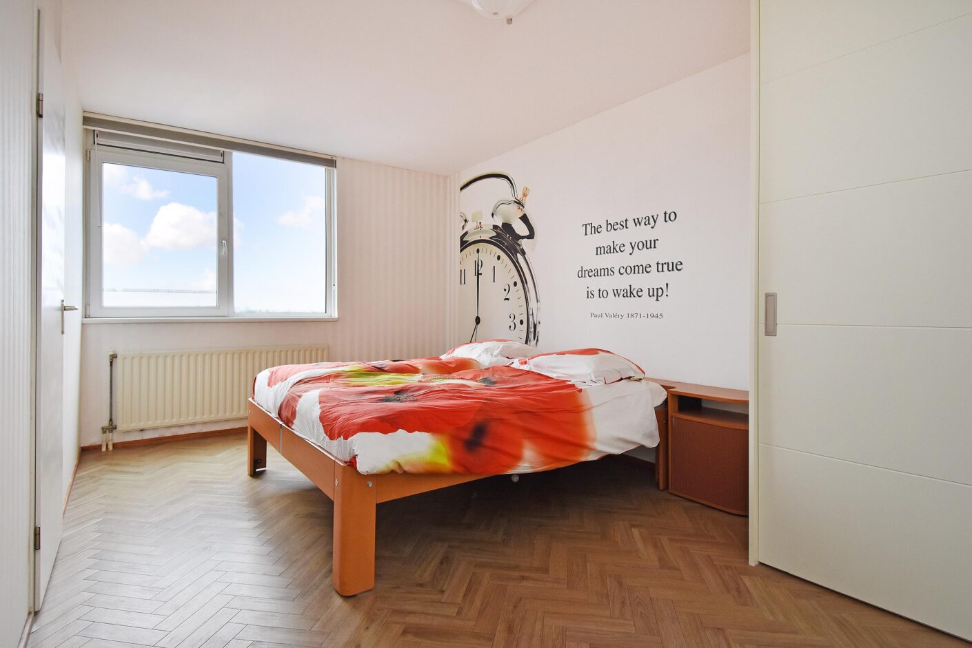 Located on the 8th floor of the ’s-Gravenduyn complex, this apartment offers two bedrooms, a sunny southwest-facing balcony, a private parking space in a secured garage, and a storage room in the basement.