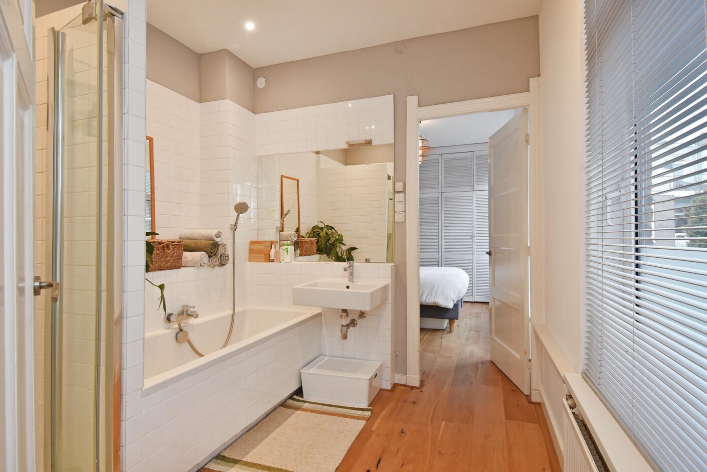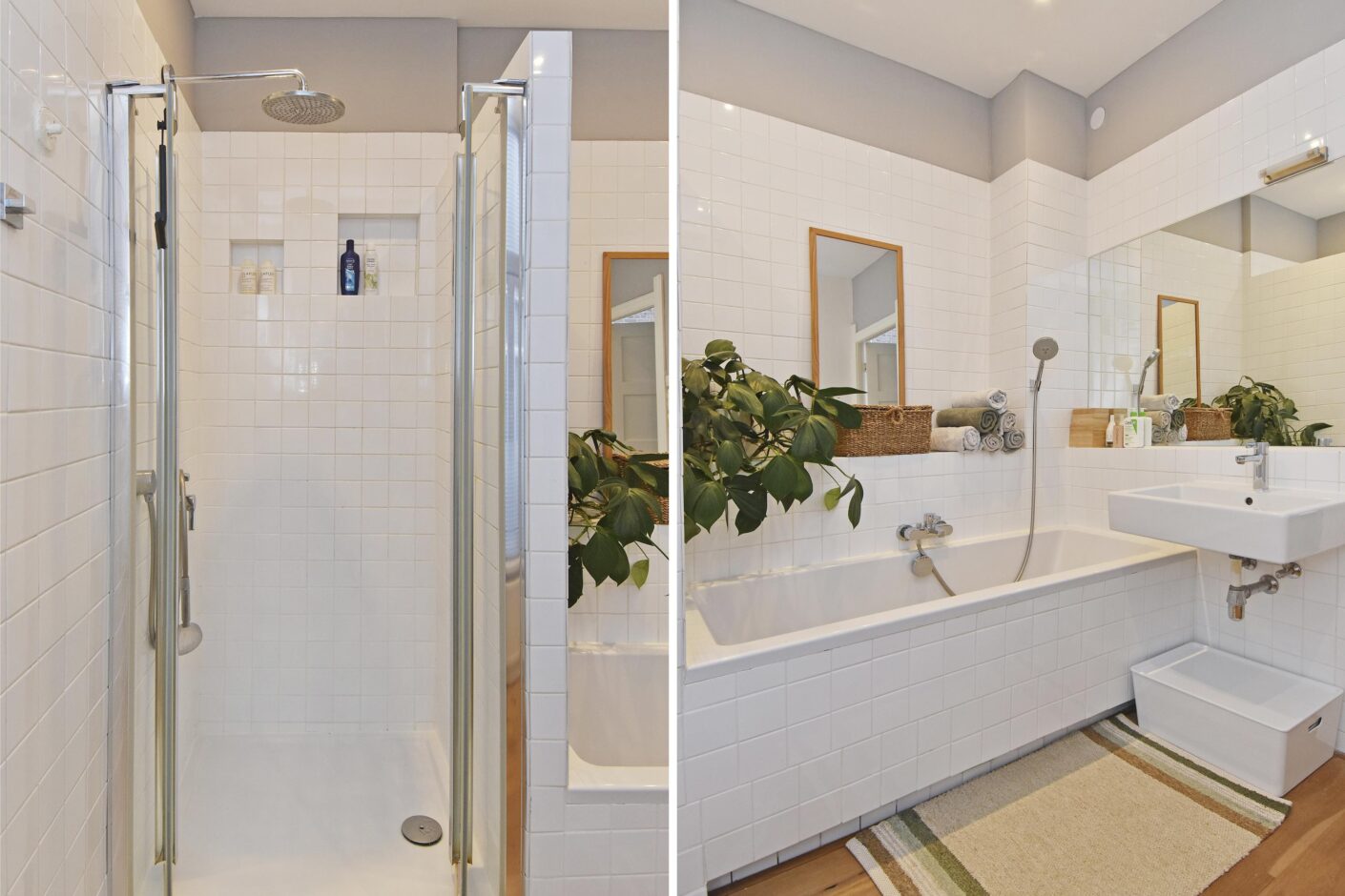 gemoderniseerde badkamer met douche, ligbad en wastafel