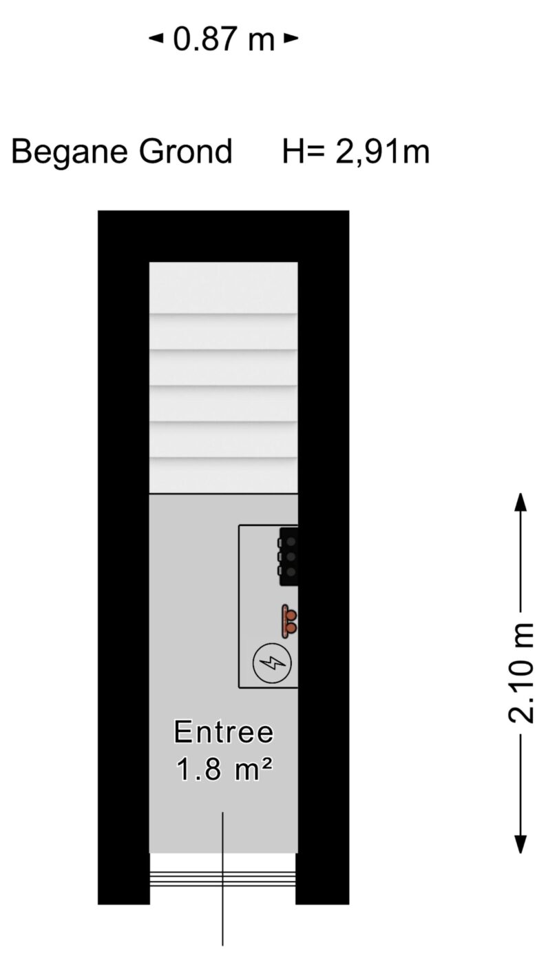 Entrance at street level with meter cupboard and stairs to the first floor.