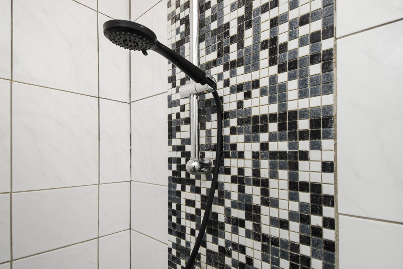 Entrance to the apartment: hallway with cupboard and simple shower/toilet combination.