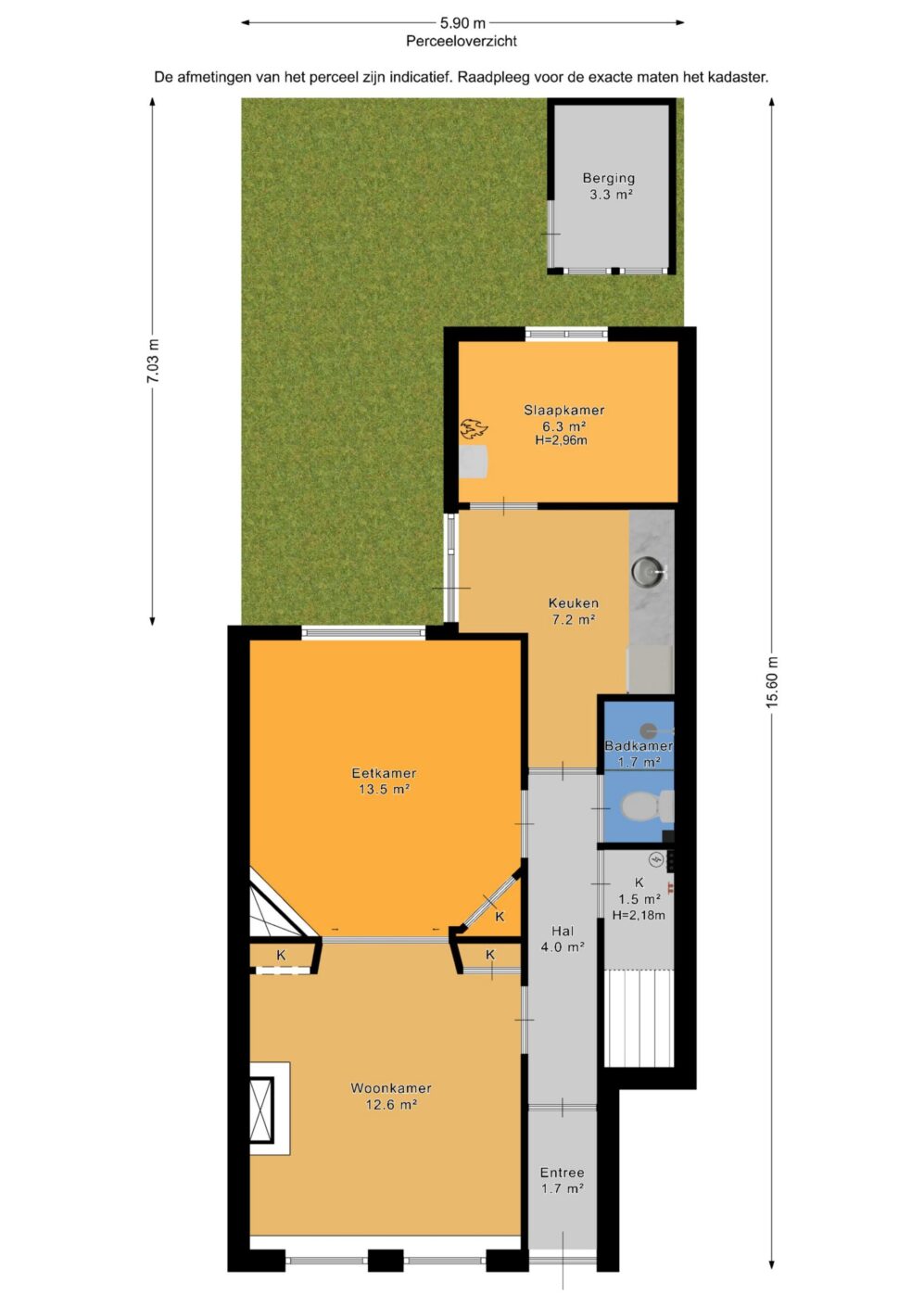 zonnig achtertuin ca. 7 meter diep op het zuidwesten met schuur
