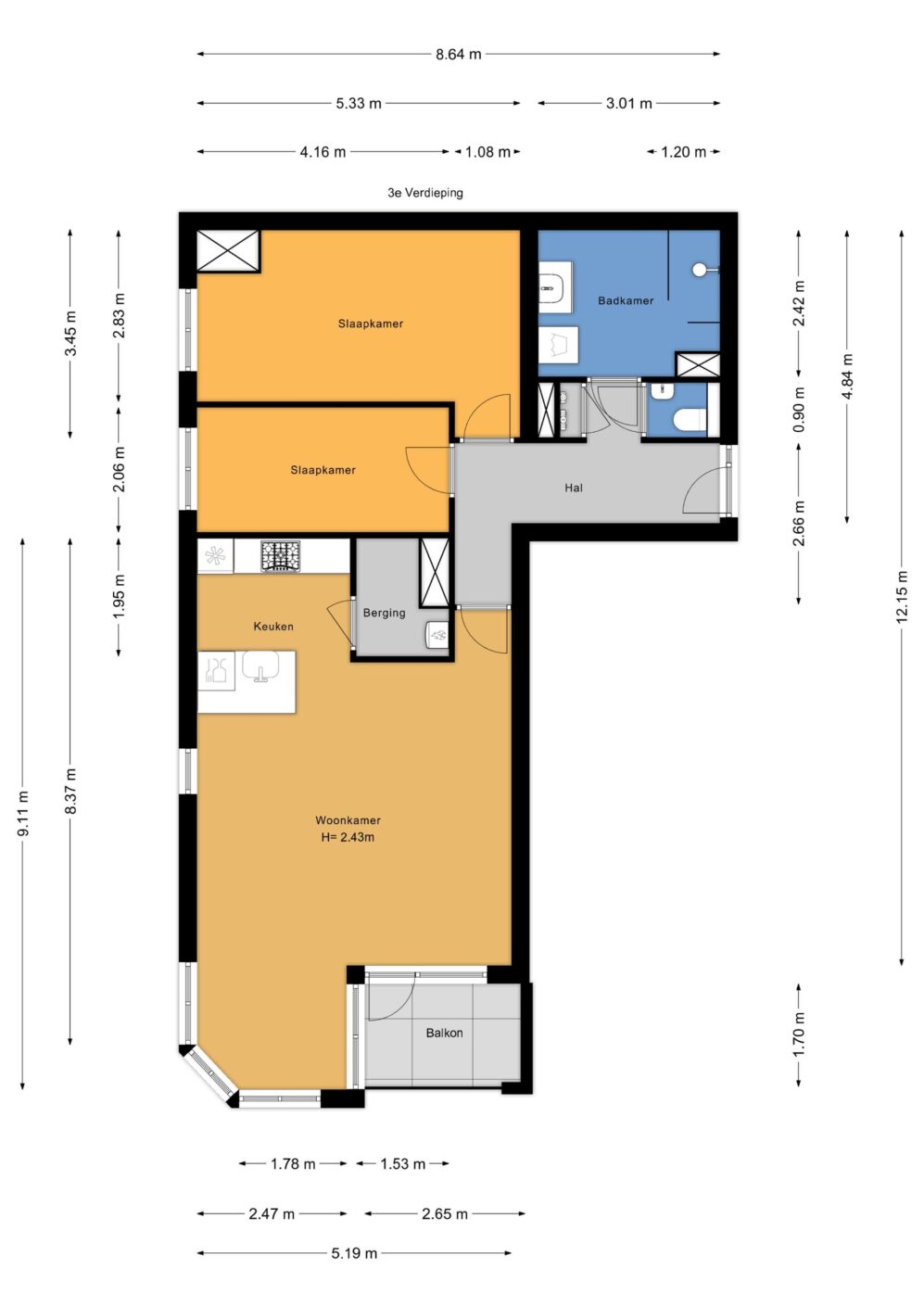Bright and spacious 3-room corner apartment (approx. 83 m²) located on the 3rd floor, featuring 2 bedrooms and a front balcony facing southwest, situated in the lively city centre of The Hague. Energy label C.