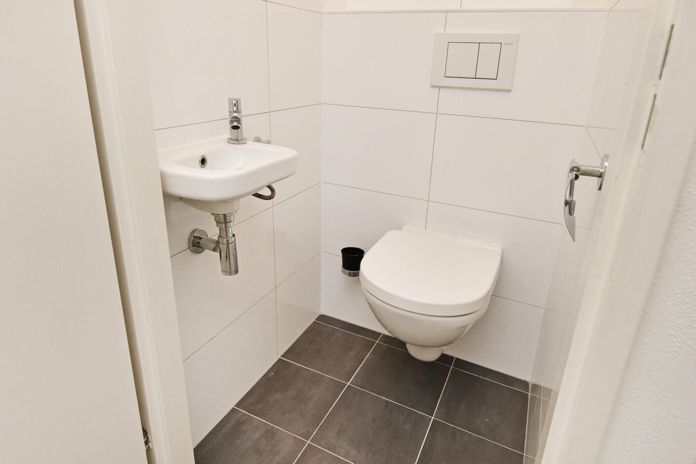 Entrance to the apartment: hallway with meter cupboard and toilet with washbasin